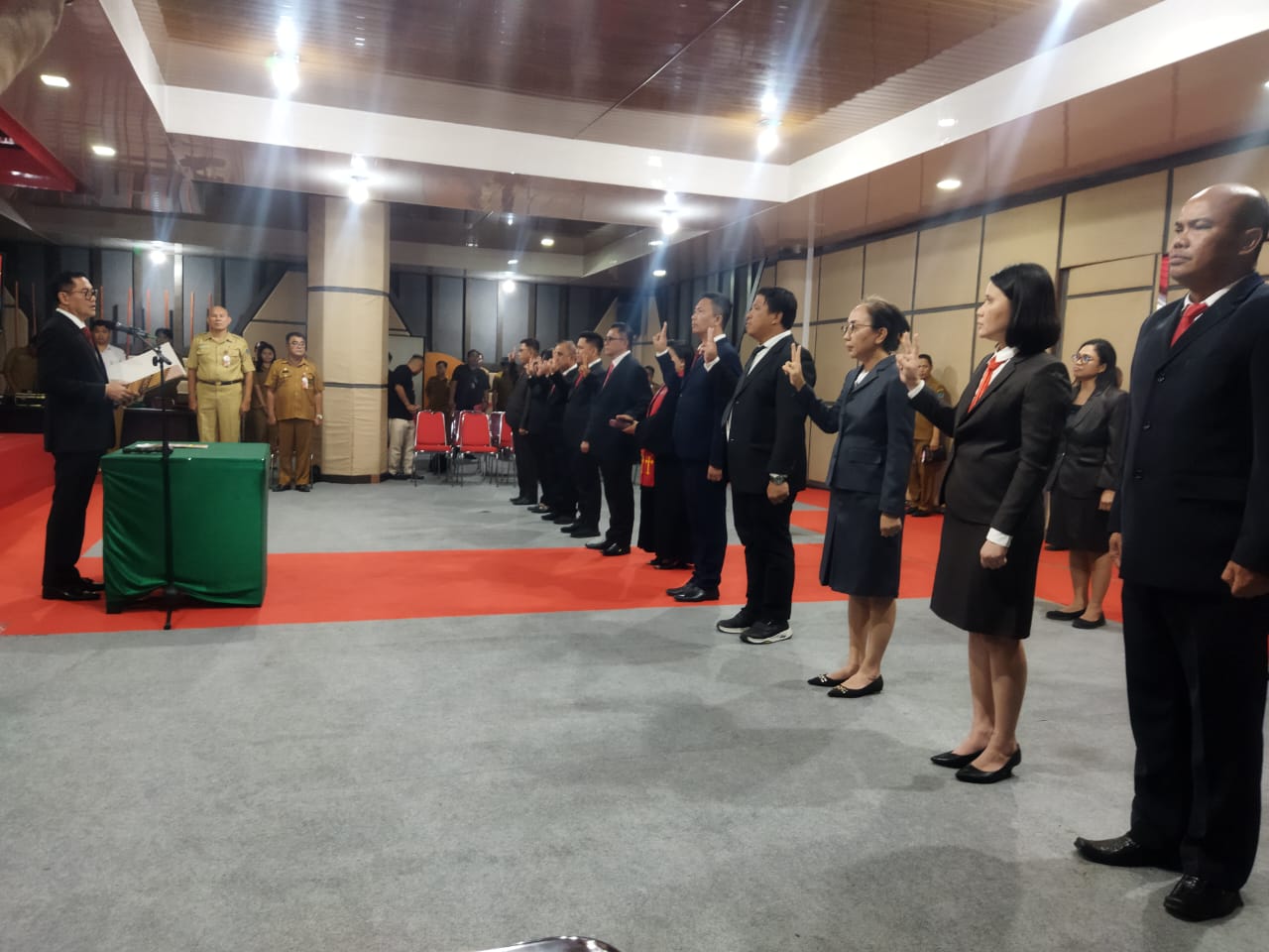 Berdasarkan dua surat keputusan Bupati Minahasa Utara yang dibacakan, dalam pelaksanaan pelantikan dan pengukuhan pegawai negeri sipil dalam jabatan pimpinan tinggi pratama Pemerintah Kabupaten Minahasa Utara.