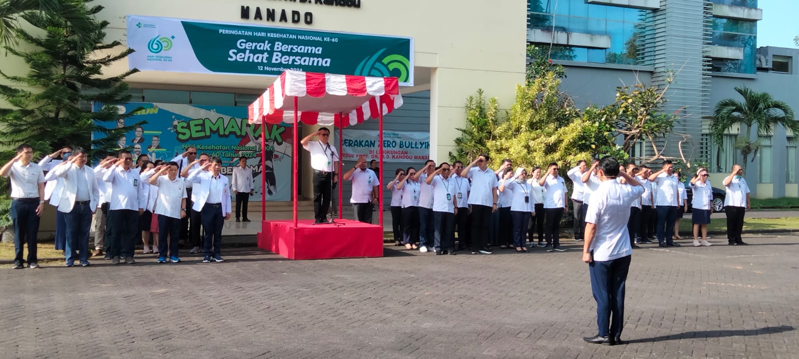 Upacara peringatan Hari Kesehatan Nasional (HKN) ke-61 digelar dengan khidmat, menandai komitmen seluruh insan kesehatan untuk terus mengawal transformasi kesehatan Indonesia.Direktur Utama RSUP Kandou, Prof. Dr. dr. Starry Rampengan, Sp.JP (K), FIHA, MARS, bertindak sebagai inspektur upacara dan membacakan sambutan resmi Menteri Kesehatan RI, Budi Gunadi Sadikin.Dalam sambutannya, Menkes menyoroti pentingnya dua dekade ke depan.